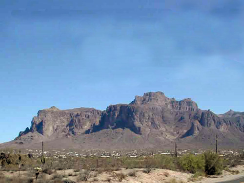 スーパースティションとは迷信とか言い伝えという意味だ。では、何故、この山が「迷信の山」と呼ばれようになったのだろうか。それには、二つの説がある。 まず、一つ目。1860年代に白人の開拓民がフォート・マクドウェル(現在のファウンテンヒルズ近く)で農業を営んでいた。彼らは、軍隊に食料や馬の干し草を提供していた。ある時、彼らは地元のピマ族から変な話を聞いた。それは、ピマ族の人々がスーパースティション・マウンテンをいつも恐れているということだった。白人は、ピマ族があまりにも迷信的だと思い、それでこの山を「迷信の山」と呼ぶことにした。 |